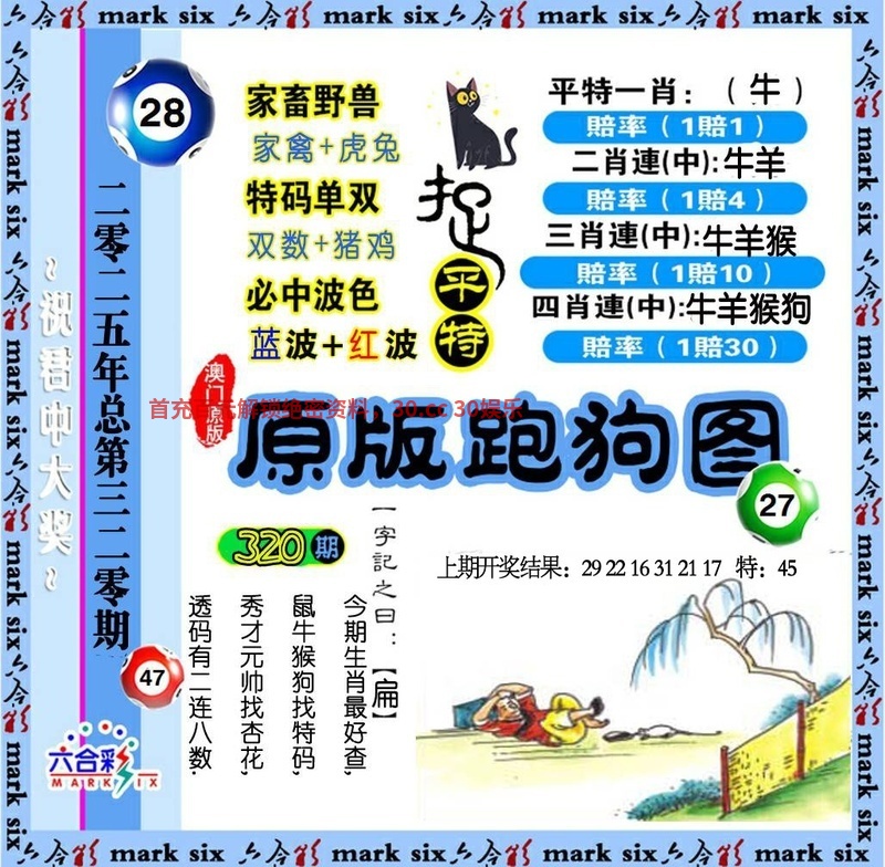| 320期 | 羊 | 蓝双 | 4尾 | 开虎28 |