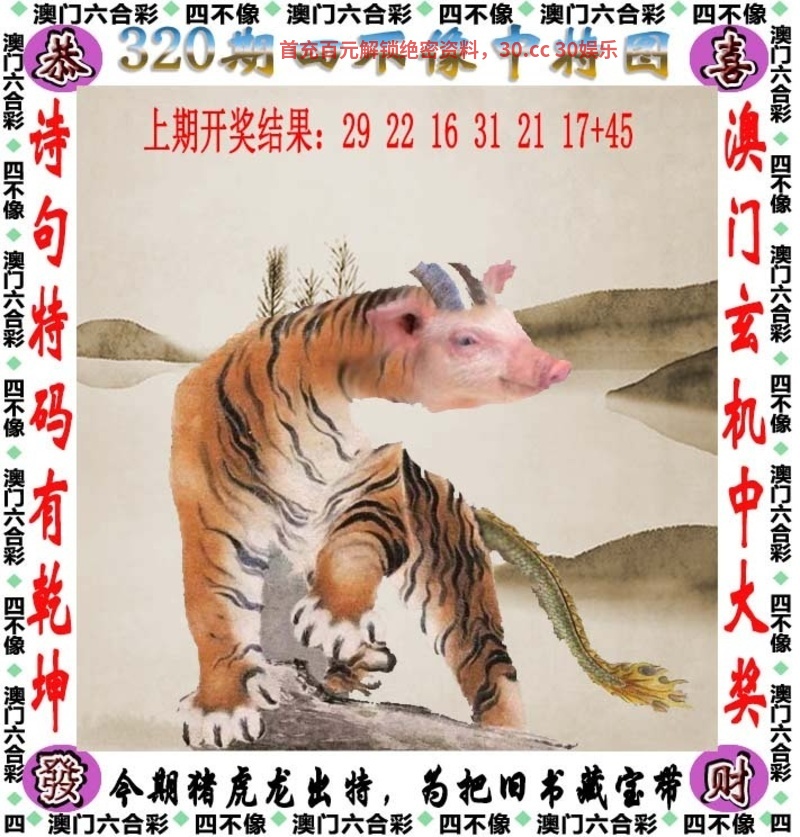 | 320期八肖 | 猪狗牛蛇马鸡虎猴 | 开:虎28 |