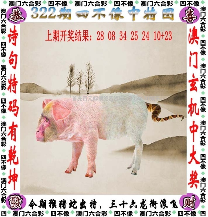 | 322期八肖 | 猴蛇猪马羊兔鼠龙 | 开:羊47 |
